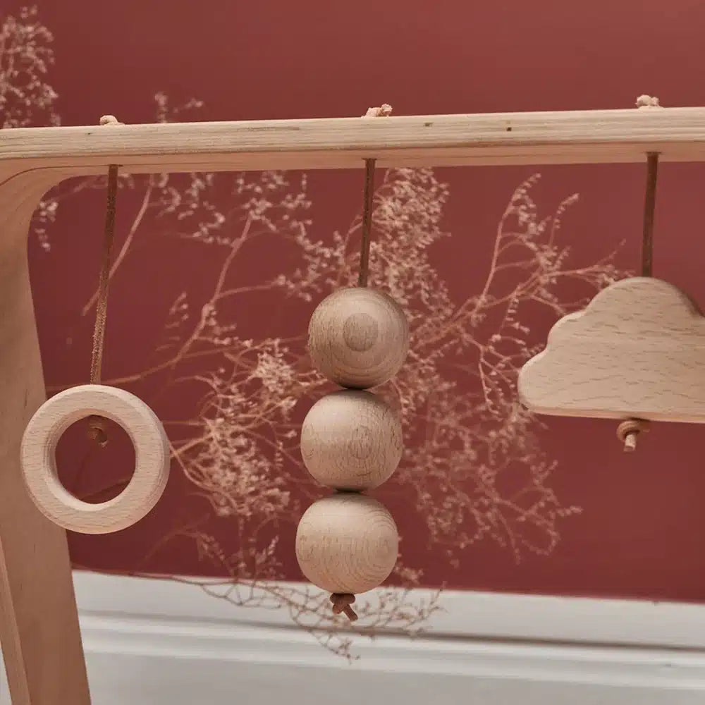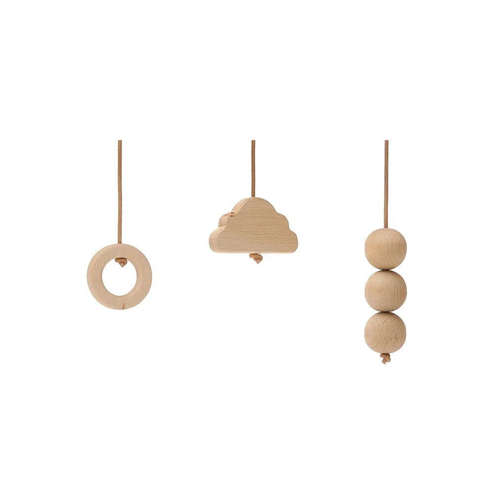 Los juguetes de madera de diferentes formas para colgar permitirán al niño despertar y divertirse, con suavidad. Son compatibles con nuestros arcos de estimulación NAHO y LEVO.