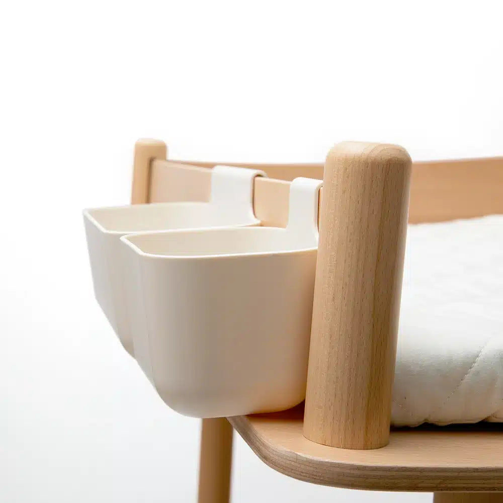On a pensé à tout chez Charlie Crane : pour ranger vos cotons, flacons et autres accessoires à avoir sous la main, les paniers de rangement se fixent sur les côtés de la table à langer, prêts à vous simplifier la vie.